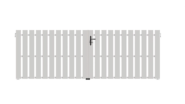 | Inclus | Notice de pose + boite de quincaillerie composée de : Gond sur platine réglable blanc, crapaudine à sceller acier, serrure tetière inox à pêne réglable et cylindrique, poignée et plaque d'entrée en polycarbonate noir, sabot de sol papillon acier noir. |